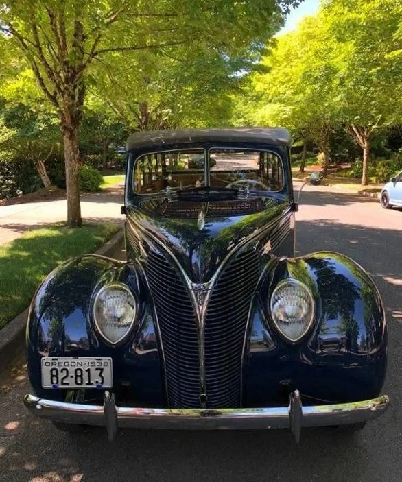 The 1938 model is a one-year-only design, featuring a distinctive V-shaped grille inspired by yacht designer Bob Gregorie under the direction of Edsel Ford.